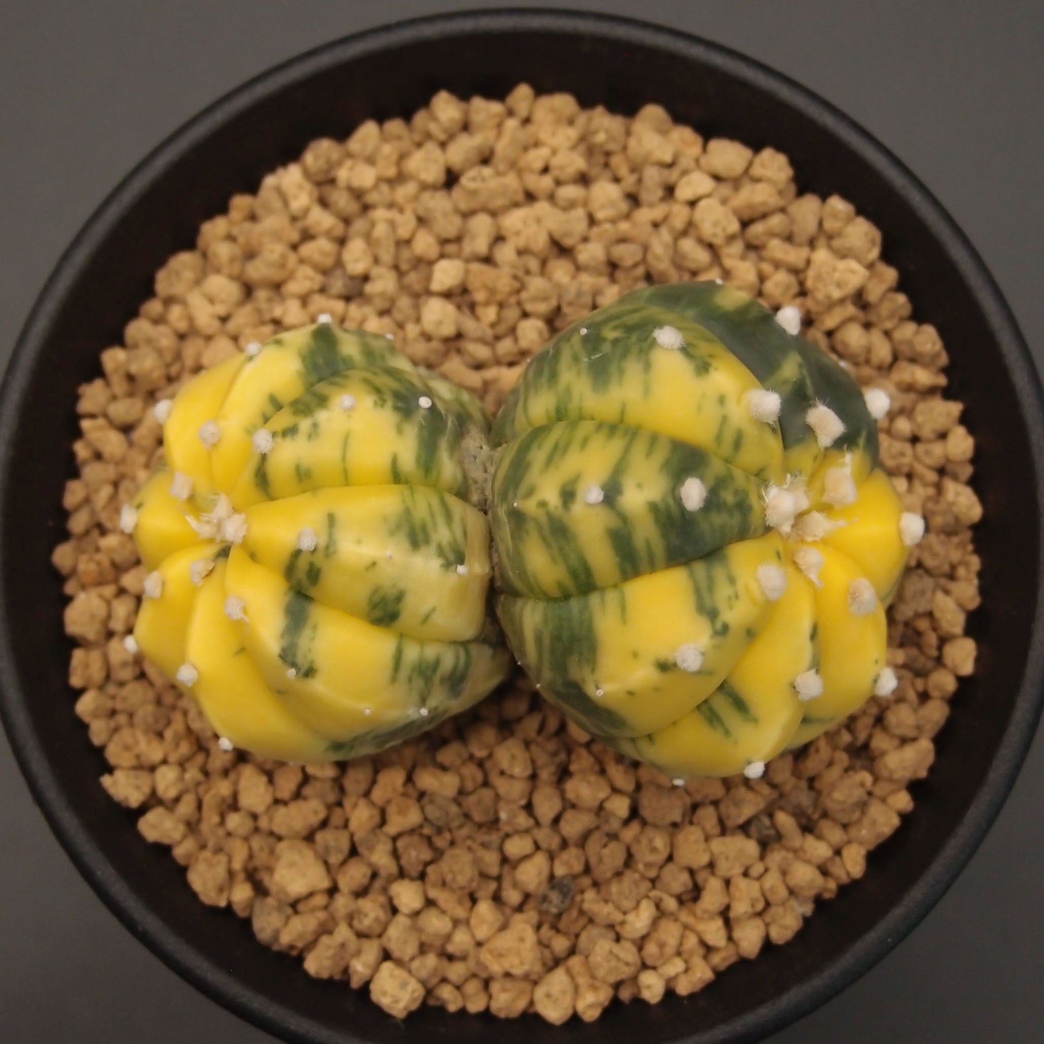 【学名】Astrophytum asterias var. nudum f. variegata (アストロフィツム・アステリアス・変種:ヌーダム・品種:斑入り)