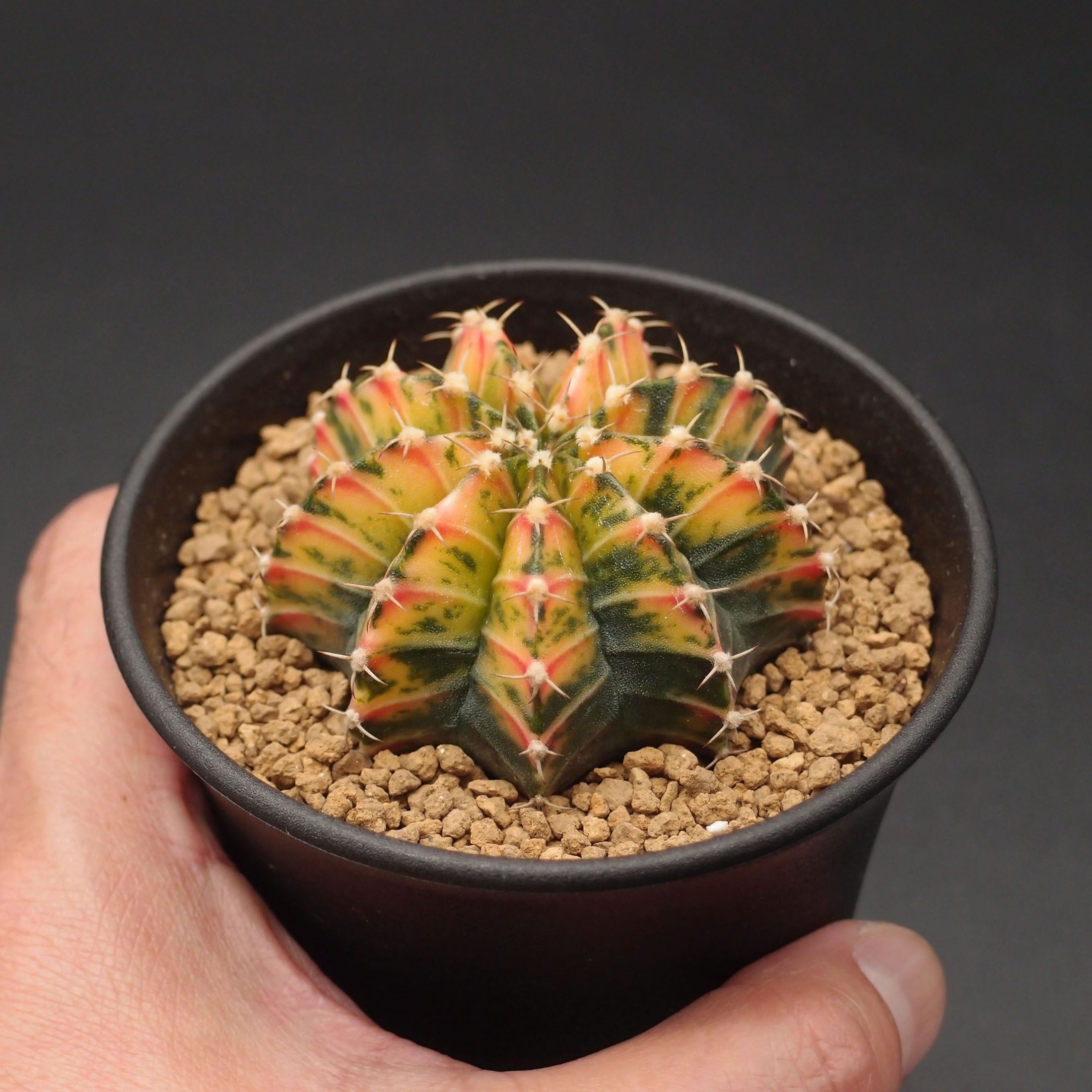 【学名】Gymnocalycium mihanovichii hyb. f. variegata (ギムノカリキウム・ミハノビッチ・交配種・品種:斑入り)