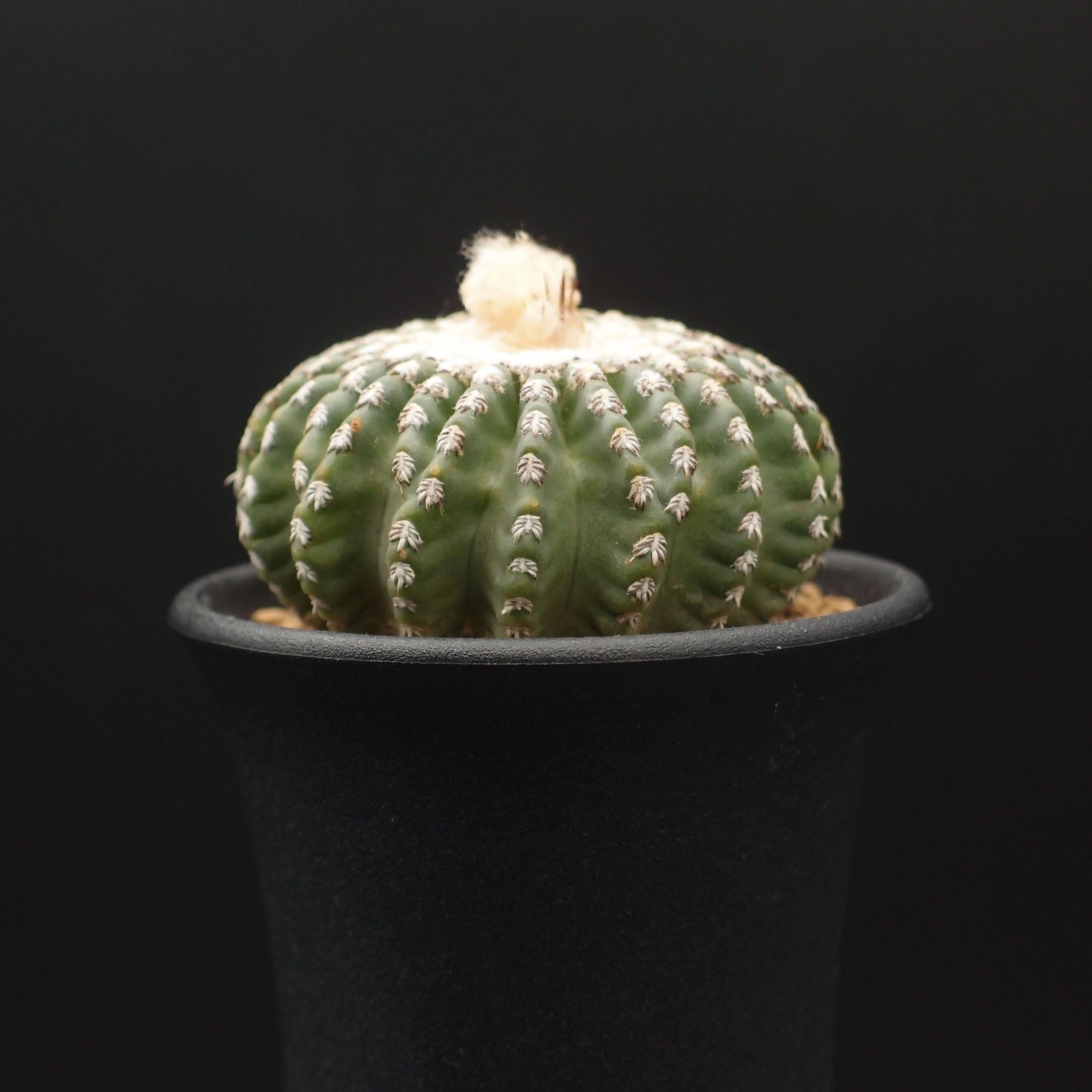 切り込みの深い稜に白く短い刺を這わせ、50〜60mmくらいで成熟し、シルクのような美しい花座を作り始める。