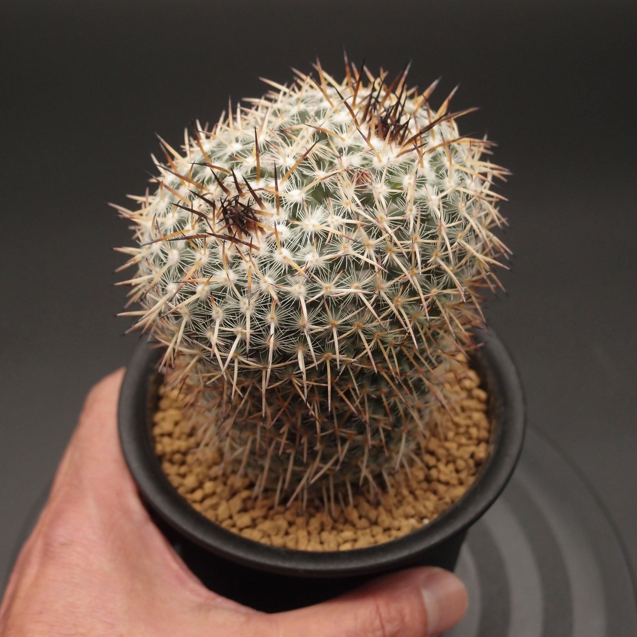 突き出た白い中刺2本と、その回りを囲むように生える細かな縁刺が美しい。